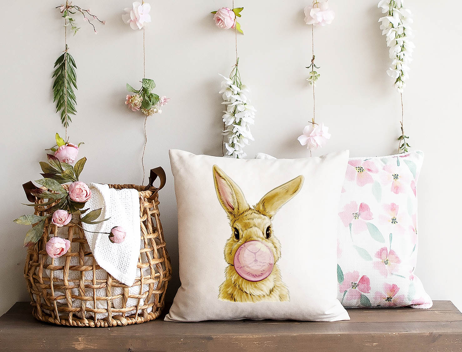Bubble Gum Bunny Pillow Cover