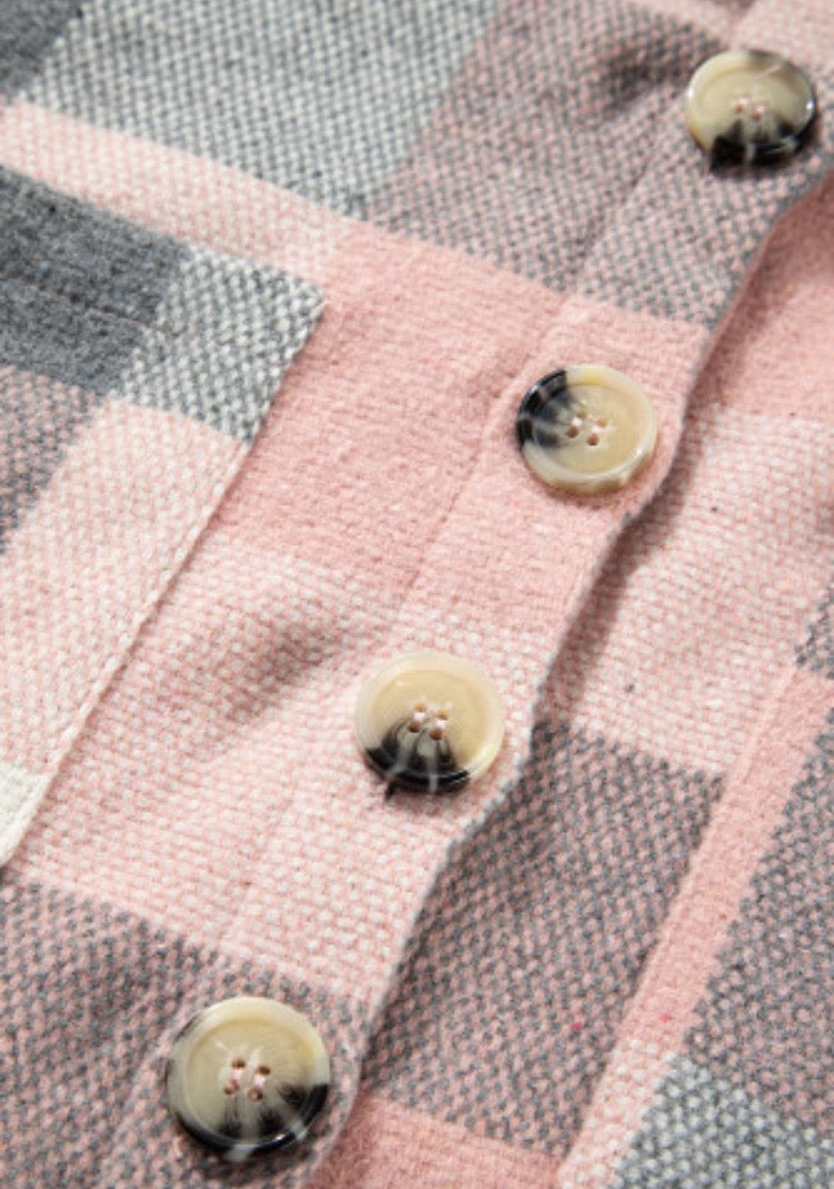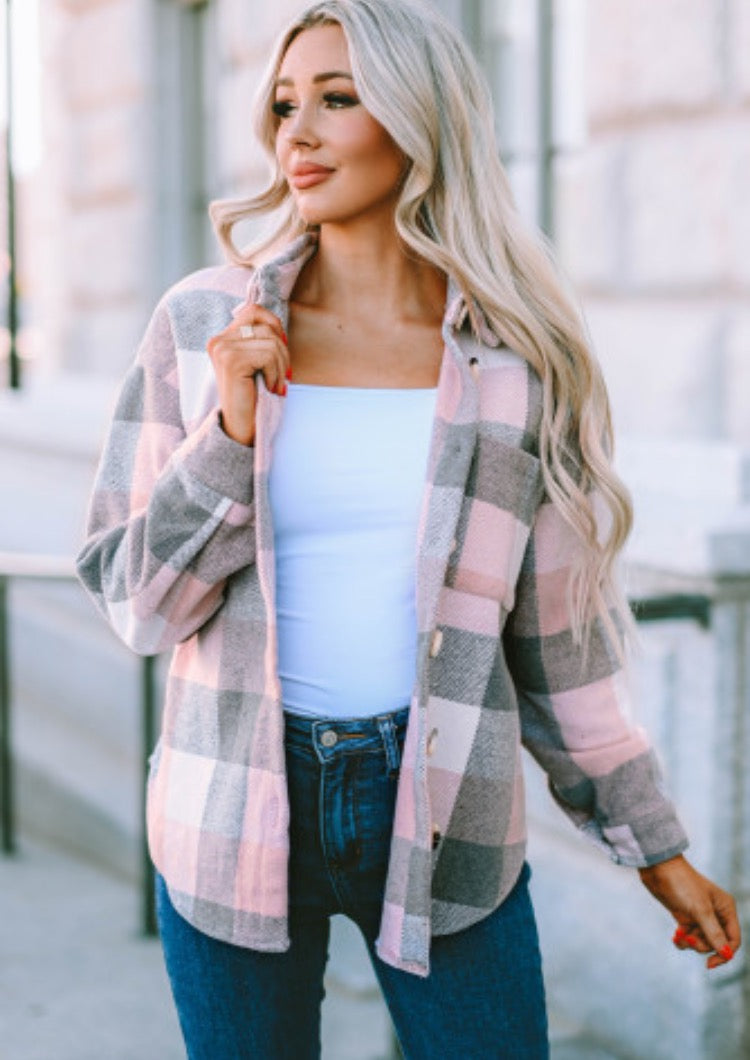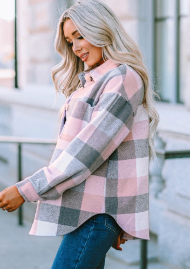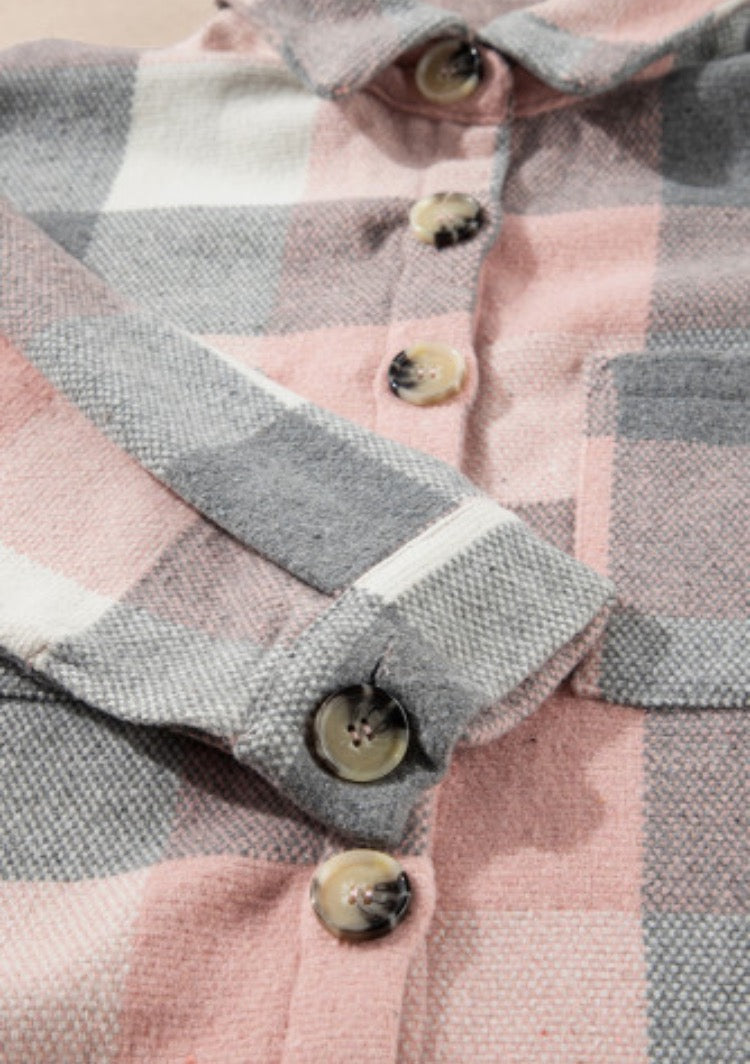 Wrap yourself in cozy charm with this adorable pink and grey plaid flannel! Perfect for layering on crisp autumn days or throwing on for a casual weekend vibe, this long sleeve shirt brings that effortless, cute factor to any outfit. The classic plaid pattern is timeless yet playful, making it ideal for everything from coffee runs to campfire hangouts. Soft, comfortable, and undeniably stylish—your new flannel favorite awaits!