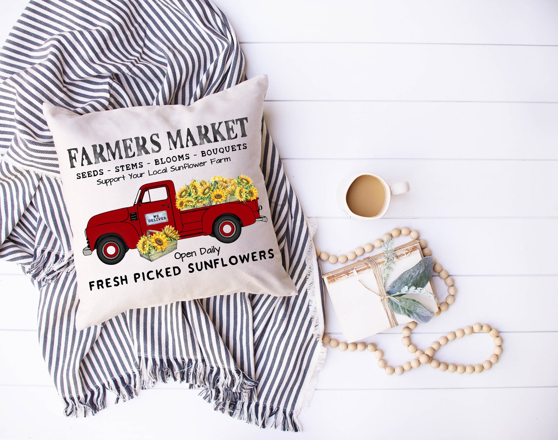 Sunflower Market Red Truck Pillow
